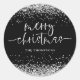 Glam Silver Glitter Merry Christmas Black Classic Round Sticker