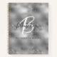 This personalized recipe notebook features a white monogram and a first name in modern charcoal gray script on a silver faux glitter and foil background, with the additional text in charcoal gray sans serif font below.