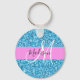 Glam and girly sky blue/ aqua and pink glitter sparkles white monogram name and initial keychain. Your custom name and monogram are written in an elegant hand lettered script with a pink background. You can change the text color and font style and size using the customize option. A perfect birthday or Christmas gift!