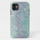 This chic design features a digital image made up of sparkly iridescent diamond chips arranged in a pattern imitating snakeskin in shimmering shades of mint green, aqua, turquoise, teal, purple and lavender.