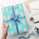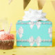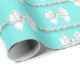 Glam Teal Aqua Blue Theme White Bow Pearls Wrapping Paper
