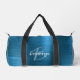 Glam Teal Blue Brushed Metal White Monogram Duffle Bag