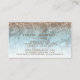 Glam Turquoise Marble Bronze Glitter Script Business Card