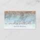 This elegant modern business card features a background image of turquoise marble, framed on the top by a bronze faux glitter border. Personalise it with your name in bronze-coloured handwriting-style script and your business information in sans serif font. A white gradient screen helps make the text pop. The reverse features bronze text on a matching marble and glitter design. Ideal for hair stylists, makeup artists and aestheticians.