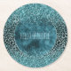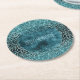 Glam Turquoise Teal Blue Leopard Print Glitter Round Paper Coaster