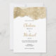 An elegant glam white, gold, and silver glitter luxury wedding invitation is the perfect design to complement a classy and sophisticated event. It features sparkle gold and silver with simple and elegant gold and black typography on a white background. This traditional, unique, and classy design will impress all of your guests. All designs are printed.