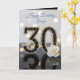 Glamorous 30th Birthday Black Diamonds White Rose Card