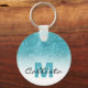 Glamorous Aqua Blue Glitter Sequin Ombre Monogram Key Ring