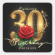 Glamorous Black Gold Red Rose 30th Birthday Party Square Sticker