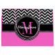 Glamour Girl Hot Pink and Black Chevron Monogram Large Gift Bag