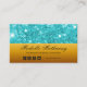 Glamourous Aqua Glitter and Gold Beauty Consultant Business Card