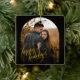 This elegant holiday Ornament features a glamourous design with a touch of sparkle. Your photo is showcased in a beautiful golden arch, set against a rich black background adorned with delicate gold glitter. The "Happy Holidays" greeting is written in a stylish script font, also in gold, adding a touch of elegance and festivity.