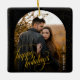 Glamourous Black & Gold Glitter Holiday Arch Phot Ceramic Ornament
