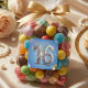 Celebrate a magical milestone with this glamourous Sweet 16 birthday partysticker! Featuring stunning 3D-style faux rainbow glitter numbers, elegant script typography, and a festive background of blue and gold balloons with sparkling bokeh lights. This elegant and modern design is perfect for adding a luxurious touch to your daughter's sixteenth birthday celebration. Use these beautiful blue and gold labels as envelope seals for your invitations, chic decorations for your party favours, or stylish additions to your gift bags. Easily edit the name and date to perfectly match your beautiful sweet sixteen party aesthetic!