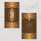 Make a lasting impression with this luxurious and elegant business card design featuring fine filigree ornate ornaments with diamonds and sparkling stars. The borders are shimmery orange and brown gradient with a plain brown background.