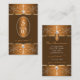 Make a lasting impression with this luxurious and elegant business card design featuring fine filigree ornate ornaments with diamonds and sparkling stars. The borders are shimmery orange and brown gradient with a plain brown background.