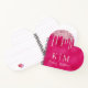 This stylish custom notebook features a glamourous, hot pink coloured background with a foil texture design. Light pink glitter sequins are dripping across the top portion. Monogram initials are placed beneath the glitter, followed by a sample name printed in an elegant script font. You can personalise the notebook to include your own custom name and monogram.
