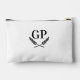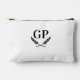 Glamourous laurel crest monogram logo cosmetic bag. Classy Accessory Pouch design personalised with your name initials and colours. Elegant bags for home and travel. Black and white. Suitable for men and women.