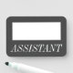 This glamourous and classy volunteer reusable dry-erase name tag style badge design features the message "ASSISTANT". It also features an area where a volunteer’s name could be written using a dry-erase marker. A name tag style badge like this could possibly be worn to identify that somebody is an official volunteer or assistant at an event. [~Z0000359]