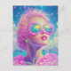 Glamourous Neon Woman with Sparkling Glasses Postcard