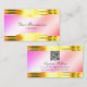Glamourous Pastel Pink Gold Borders with QR Code Business Card