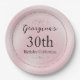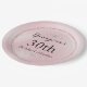 These custom party plates feature a glamourous design. A sparkly, faux pink glitter border frames the plate. The background is a shiny looking, soft pink foil design. A sample name and a birthday are printed across the centre, which you can personalise to include your own custom name, event title, or other text. Diamonds accent the top and bottom portions of the text area. It's perfect for a birthday, bridal shower, or other special event.