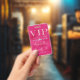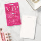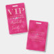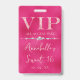 This glamourous VIP all access pass badge features a sparkly, feminine design on a hot pink background. The VIP title is printed in a soft pink glitter font, followed by the event title. A band of diamonds separates the text. The party or event location and time are printed on the back. It's perfect for a birthday party, sweet 16, bridal shower, or other elegant celebration.