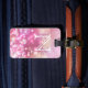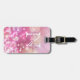 NewParkLane - Fun luggage tag with leather strap and a pink shimmery, sparkling background and your monogram and name in an elegant font.