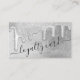 This girly and glamourous customer loyalty business card is perfect for a stylish and trendy professional businesswoman. It features faux printed sparkly silver thick glitter drips on top of a silver foil background. The typography is an elegant cursive script with a modern serif font to match. It's chic, pretty, unique, and luxurious; the perfect way to advertise your business and stylise your marketing and advertisement material for your customers.