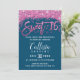 This unique and original Sweet 16 invitation design features modern, girly, and chic faux printed bright pink dense glitter dust with custom brushstroke glitter typography on a simple dark teal blue background. This elegant and glamourous invitation will wow your guests and be the perfect compliment for your daughter's pretty and classy birthday party. Change the colour of the background or text by clicking the "customise" button for more options.