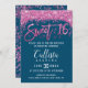 Glamourous Teal Bright Pink Glitter Dust Sweet 16 Invitation