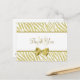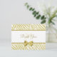 A glamourous designer thank you postcard with a white and gold zebra pattern and an elegant gold ribbon tied into a girly bow. Personalise this chic and stylish animal print thank you postcards by adding your own custom text and monogrammed initials. Flat printed image, not actual ribbon.