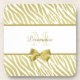 A glamourous designer coaster set for women with a white and gold zebra pattern and an elegant gold ribbon tied into a girly bow. Personalise this chic and stylish animal print set by adding your name and monogrammed initials. Flat printed image, not actual ribbon.