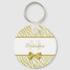 Glamourous White and Gold Zebra Print With Name Key Ring