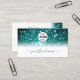 Make a lasting impression with this eye catching and stylish business card design featuring shimmery teal glitter with bright stars and on the reverse side there is a white background with a glitter border.