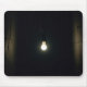A single light bulb hangs from a cable against a dark background, casting light that illuminates a dark room