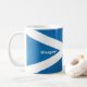 Glasgow / Glaschu Scottish Gaelic (Gàidhlig) translation mug with painted Scottish Flag saltire background