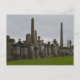 Graves and monuments at Glasgow Necropolis, Scotland on a stormy, cloudy day.