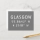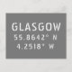 Glasgow Scotland latitude and longitude map coordinates in urban white font on grey background (both font and background colours can be easily changed if wanted)