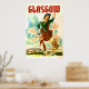 Vintage Travel Poster, Glasgow Scotland. With traditional costume scene.