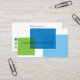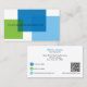A finance business card displaying a crisp white background setting the stage for a striking geometric pattern of calming blue and refreshing green squares, evoking the elegance and transparency of glass blocks. This design choice symbolises clarity, precision, and a forward-thinking approach, making it an ideal representation for your company. On the reverse side is a space for a QR code. Kindly ensure QR code address is updated accordingly.