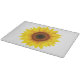 Glass cutting board is shown in a lovely sunflower print.