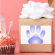 A shiny, transparent dog paw print made of glass. All digital image that reproduces the texture of glass.
