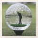 Pictured On A Golf Tee On A Golf Course Is A Transparent Glass Golf Ball With A Golf Player Inside.