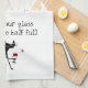 Glass Half Full Funny Wine Toast with Cat Tea Towel