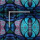 Fragmented shapes boldly outlined and suggestive of blown glass create a kaleidoscope pattern of pink, green, purple and blue hues.