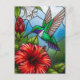Glass Patchwork Hummingbird Garden Floral Mosaic Postcard