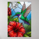 Glass Patchwork Hummingbird Garden Floral Mosaic Poster
