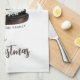 Festive Glass Snowball Winter Village Foliage Merry Christmas kitchen towel. Fairy tale houses in winter with snow and beautiful snowflakes. Lovely brown climbing plants. A Merry Christmas wish in a trendy script. You can change any text on the towel.