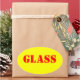 These shipping labels are oval shaped with GLASS in red over a yellow background. These shipping stickers are perfect for large or small business.